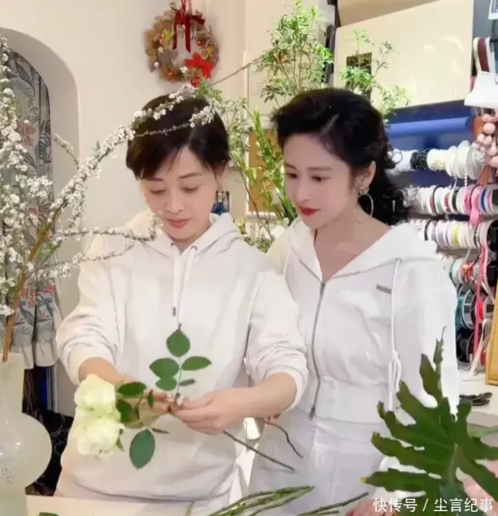 最近48岁的梅婷,因为在剧组拍戏,无法像在家里一般,不错频繁买花插花。是以在拍戏之余,跟剧组的颖儿两个东谈主相约着去花店作念了插花。